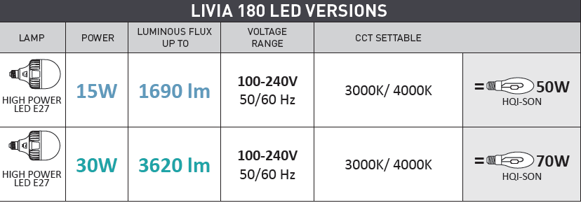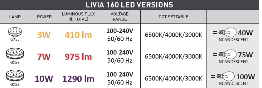| WATT | 3W, 7W, 10W, 15W, 30W |